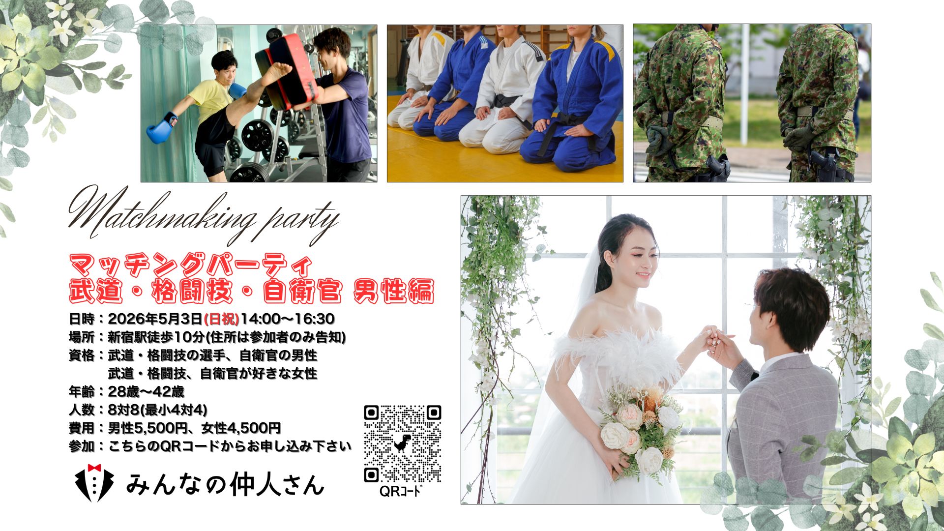 5月3日に婚活パーティ(武道・格闘技・自衛官 男性編)を開催します!